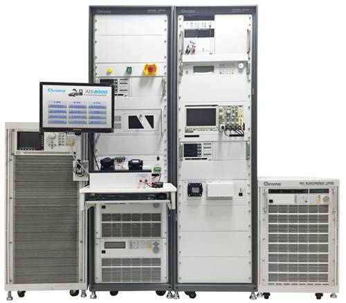 电动汽车充电桩测试系统是以Chroma8000-ATS为基础的客制化系统,专门针对交流充电桩与直流充电机(EVSE)进行验证,并配备了优化的标准测试项目,可符合法规SAE-J1772,CNS15511,中国能源局标准NB/T 33001,NB/T33002,NB/T33008.1与NB/T33008.2;中国国家标准GB/T 18487.1,GB/T 27930,电动汽车传导充电互通性测试规范*…等要求对产品进行测试,所以此系统不但提供了电气特性测试,也进行通信协议测试,可以模拟实际充电桩在操作时,同时输出功率与通信,可测试充电桩是否会在大功率传输过程中所产生的磁场而干扰到通信。并可模拟各信号线在充电过程中 Open/Short/CC1信号电压变化时充电桩相应的保护动作及回应间已排查通讯隐患。