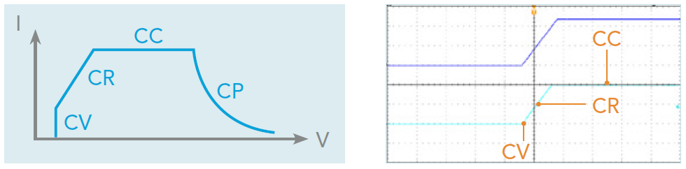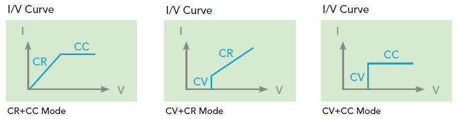 新颖的复合式操作模式CR+CC、CV+CR、CV+CC模式等,CR+CC适合应用于电源的开机测试;CV+CR可取代Von点的设定应用,CV+CC则可应用于电池的放电测试。
