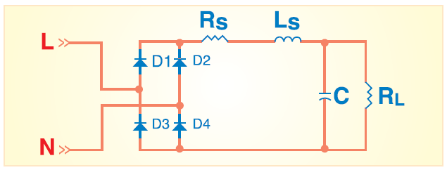 图2为桥式整流的典型线路。在RLC模式下,用户可透过设定RLC值,100%模拟实际待测物的行为。图3&4分别是透过实际被动负载(电阻、电感、电容)与使用RLC负载模式量测。图5则为定电流模式下所得到的波形。
