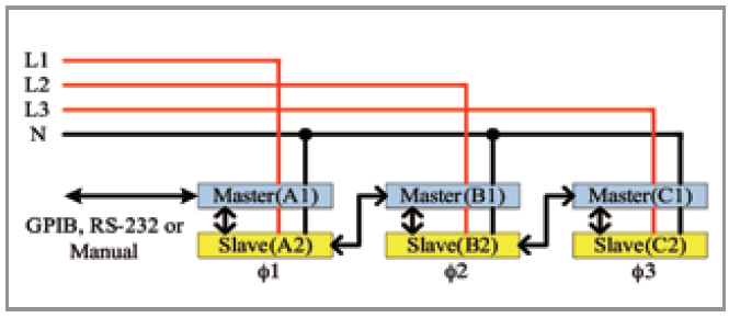 63800系列提供多台并联、三相与并联三相的功能,让用户能够进行更大功率或三相交流电源的测试应用。其中,63800系列的各个不同型号的负载也可互相做并联或三相的搭配,这样可以更灵活、更弹性的使用63800系列交流电子负载,以节省成本。