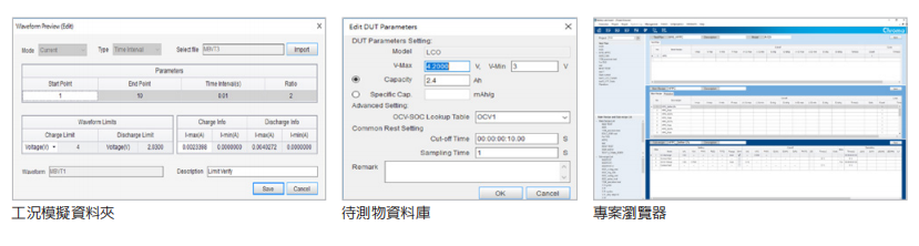 Battery Lab Expert(Battery LEx)是专为电池芯测试所开发的多功能软件平台,综合以下三大特色及多项应用功能。