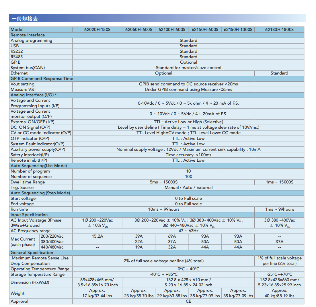 名  称:可程控直流电源供应器(太阳电池阵列模拟功能)MODEL62000H-S系列
