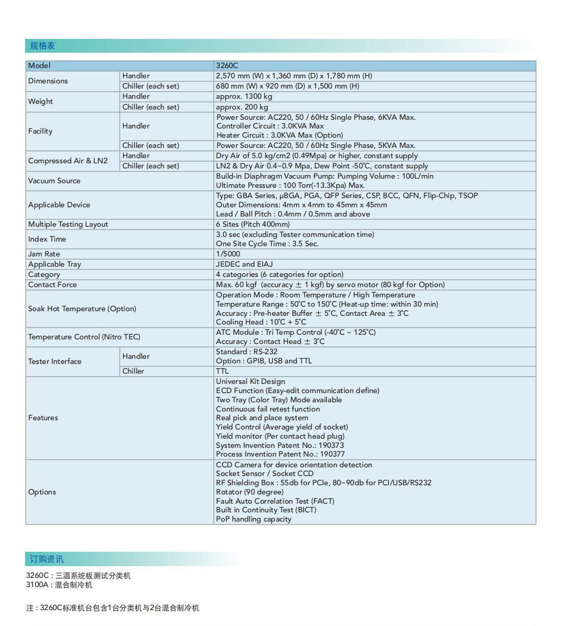 名  称:三温系统板测试分类机MODEL 3260C